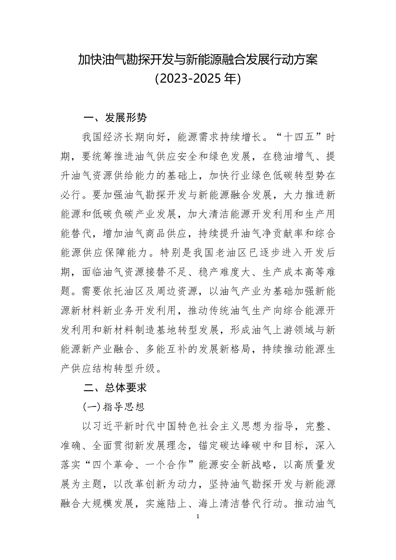 附件:加快油气勘探开发与新能源融合发展行动方案(2023-2025年)