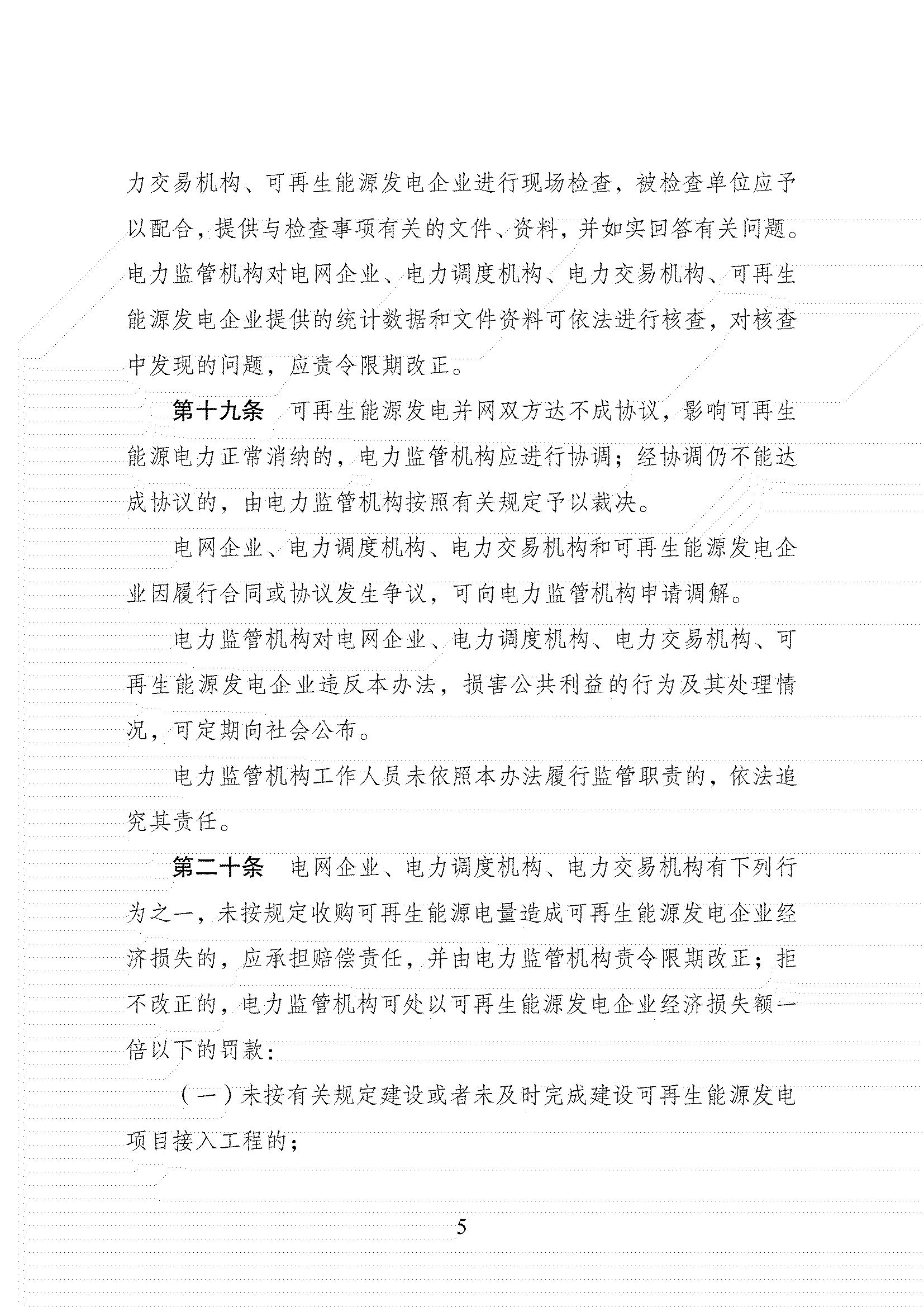 (五)因电网企业、电力调度机构或者电力交易机构原因造成未能全额保障性收购可再生能源电量的其他情形。