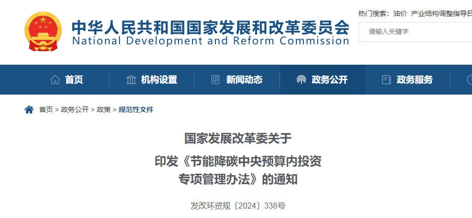 近日,国家发展改革委印发《节能降碳中央预算内投资专项管理办法》的通知,对节能降碳项目进行补贴,支持资金最高不超过项目总投资的30%,单个项目支持资金原则上不超过1亿元。